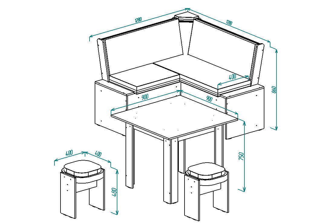 Итак, чертежи соответствуют вот такой модели кухонного уголка: