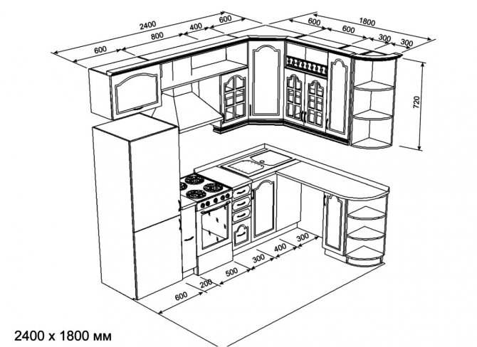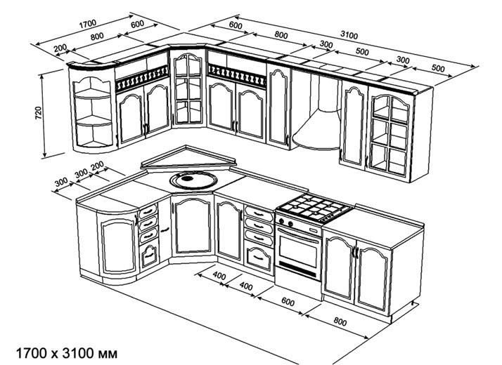 Проекты П-образных кухонь. Схемы, чертежи, эскизы, рисунки кухонь буквой П. П-образная кухонная мебель и гарнитуры для кухонь