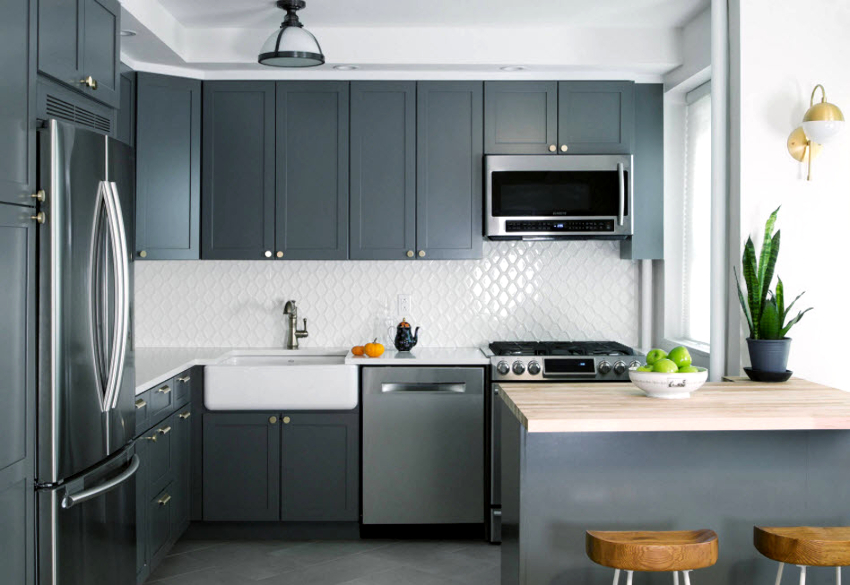 - Серый кухонный гарнитур