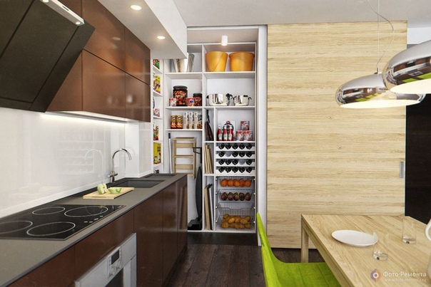 Учли ли вы каждый сантиметр имеющегося пространства для хранения кухонной утвари? Если вы не организовали для этой цели встроенный в стену шкаф, то нет. Утопленные уголки и дверная рама создают дополнительное пространство для хранения – и при этом отлично выглядят.