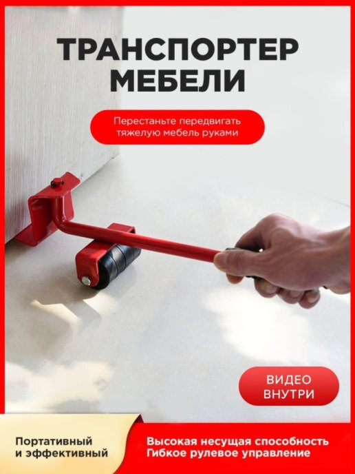 Набор Easy Furniture Mover специально разработан, чтобы помочь вам с легкостью перемещать даже самую тяжелую мебель. Перевезти бытовую технику можно собственными силами. Вы будете поражены тем, насколько легче будет перемещать мебель и другие тяжелые предметы! Первый в своем роде набор Easy Furniture Mover Set — идеальный инструмент для использования в любой ситуации. День переезда никогда не был проще!
