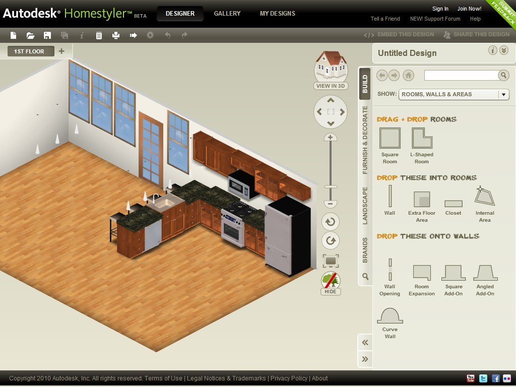Это ПО легко может использовать даже неподготовленный пользователь. Оно позволяет создать детальный план как отдельного помещения, так и всего дома, разместить в нём мебель из имеющейся картотеки и видоизменять её по собственному желанию. Демонстрация конечного результата возможно как в 2D так и в 3D формате.