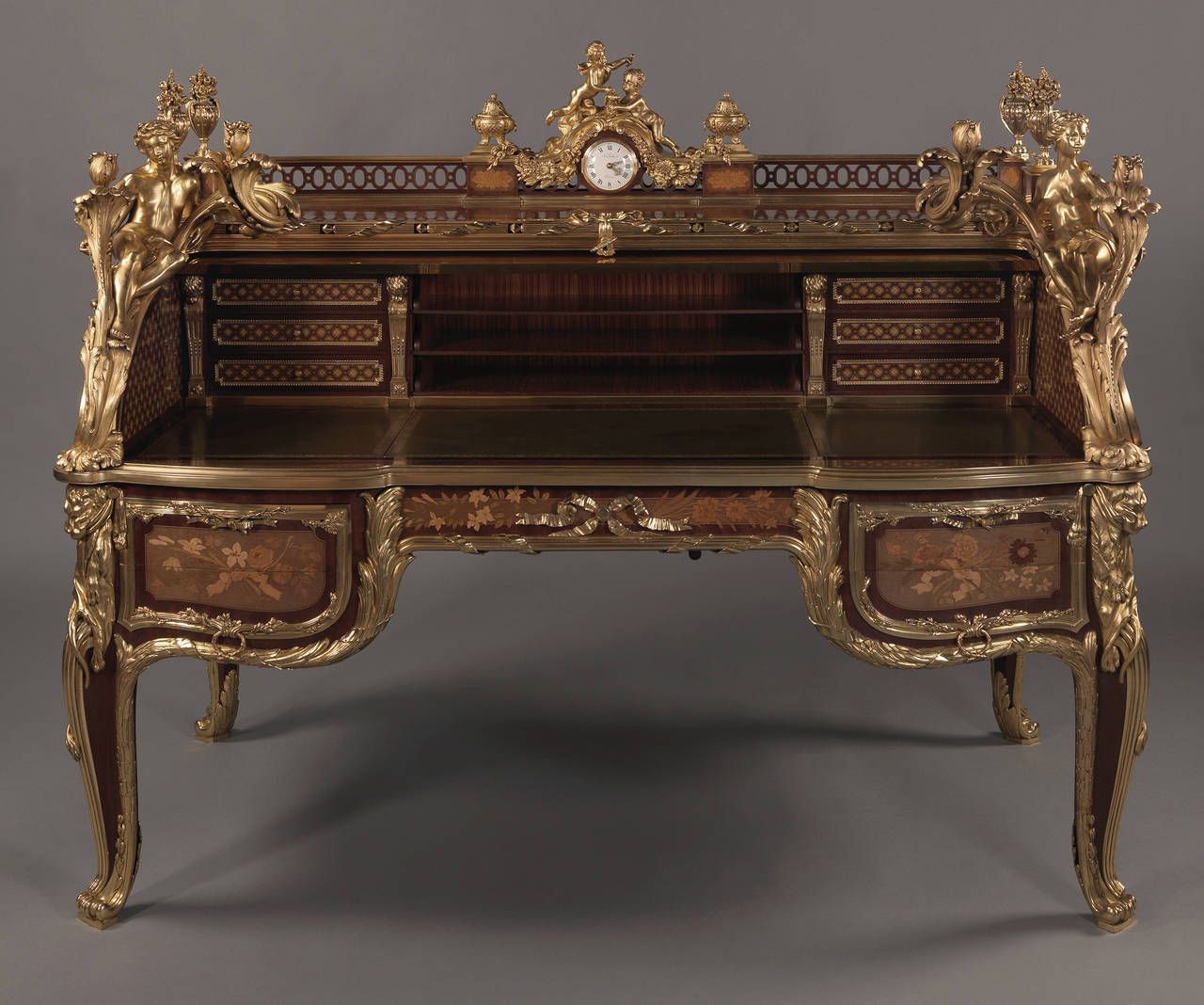 Бронзовая фурнитура располагалась симметрично на плоских поверхностях. Мраморные столешницы имели острые углы и чаще всего были серыми или черными, но иногда использовались столешницы из белого мрамора.