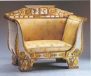 Стулья в стиле ампир имели широкие и простые линии, но не обязательно прямые. Наиболее характерным для этого стиля является стул старинной курульной формы с изящно изогнутыми X-образными опорами.Кровати этого периода называются lit en bateau, или кровати-лодочки, и имеют новую форму, вдохновленную античностью. Они помещены в богато драпированную нишу, голова и ступня находятся на одинаковой высоте, а наверху небольшой валик.
