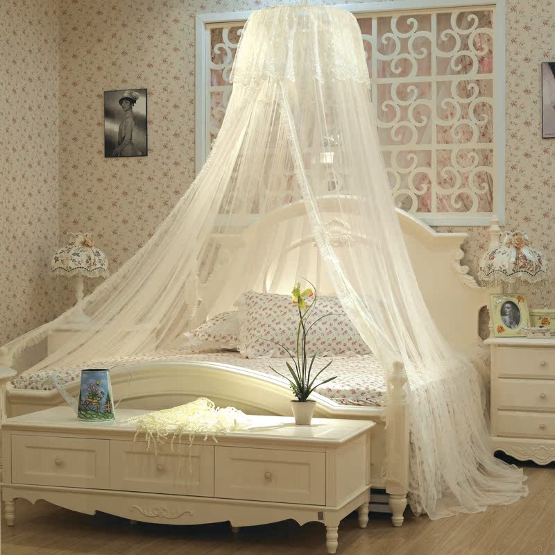 Используемая вуаль может быть любого размера, потому что она просто накидывается на стойку, поддерживающую готовый навес. Для под вуалью вам понадобится как тонкий шелковый тюль, так и чуть более плотный шелк хаботай (часто используемый для подкладки мужских пиджаков), а также шелковая лента для обвязки видимого края балдахина.