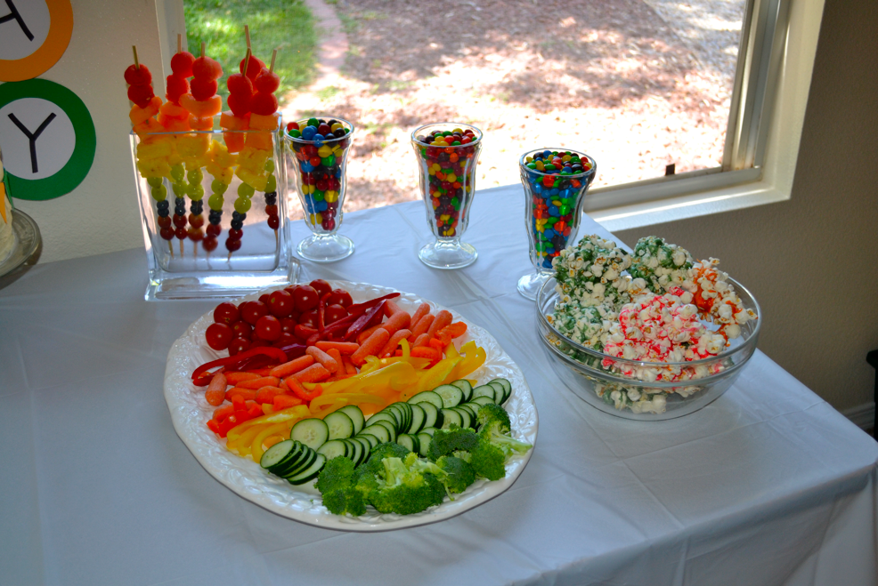 Поскольку дети всех возрастов очарованы радугой, радужный стол на день рождения можно украсить самыми разнообразными предметами, в том числе фруктами, цветами, игрушками, конфетами, напитками, воздушными шарами, одеждой и огнями, среди прочего.