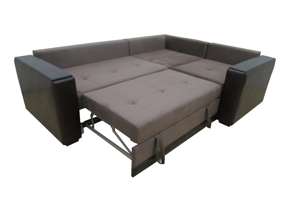 - Широкое спальное место. Поскольку механизмом чаще всего оснащаются угловые диваны, то при раскладывании получается настоящая просторная кровать, так как спальное место дополняет угловая конструкция дивана.