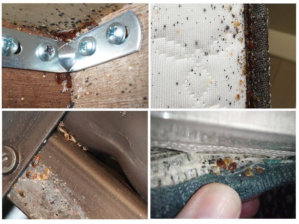 Начните с кровати, включая матрас, пружинный каркас и раму кровати. Сначала осмотрите видимые области.