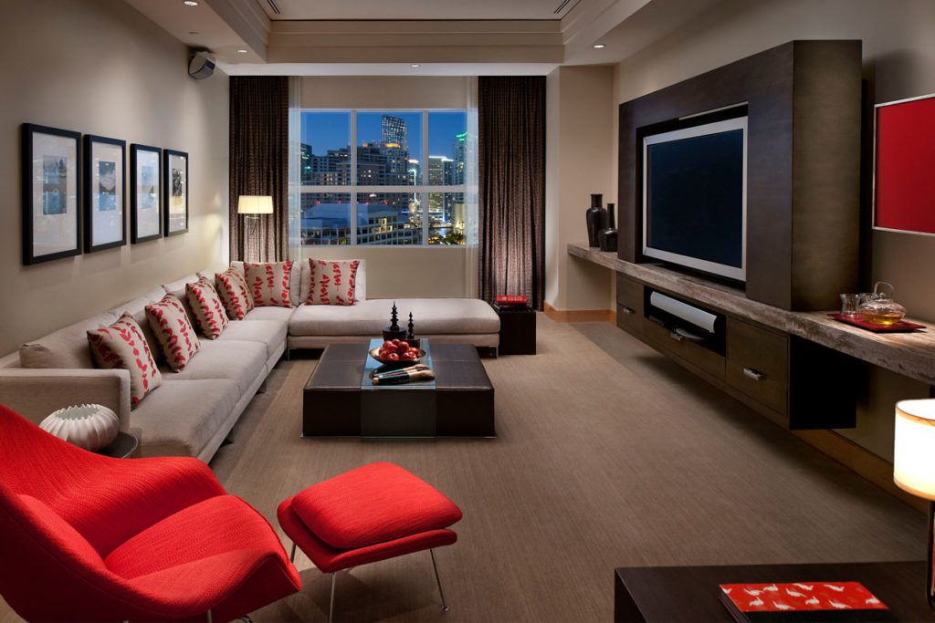 Расположение. Расположение этого предмета на противоположной от дивана стене — лучший вариант для гостиной. К слову, о расстоянии можно не переживать. Современные модели можно размещать в непосредственной близости к дивану.