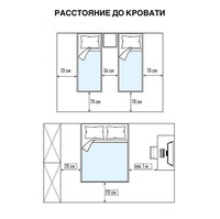 Расстояние от кровати до любого объекта, в том числе и до стен должно составлять не менее 0,7 м. Для пожилых людей расстояние следует увеличить до одного метра.
