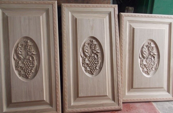 Существуют фасады из цельного дерева, филёнчатые, из клеенного массива, шпонированные.
