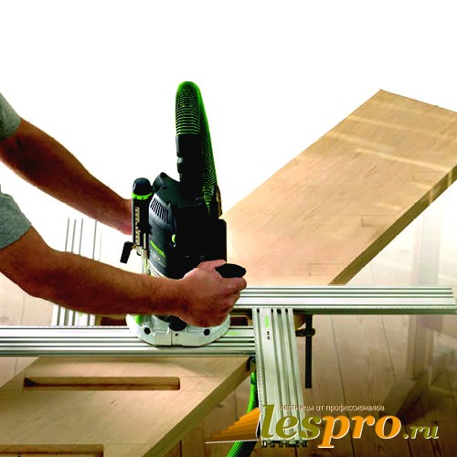 Этот инструмент имеет те же функции, что и предыдущий. Как и направляющая планка, рельс обеспечивает исключительно плавное прямолинейное движение устройства. Работа ручным фрезером по дереву с использованием направляющей позволяет значительно сократить время, затрачиваемое на обработку той или иной детали. Кроме того, с помощью указанного оборудования можно установить механизм практически под любым углом относительно края стола.