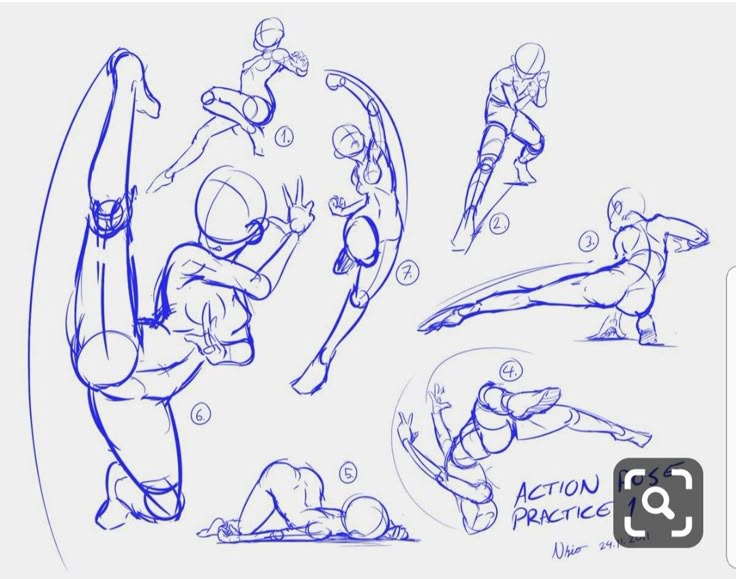 Ниже приведены несколько примеров, в которых схематические «человечки» отображают различные позы. Как правило, сразу видно, естественная поза или нет. В крайнем случае, попробуйте воссоздать ту позу, которую нарисовали, и вам сразу станет ясно 😉