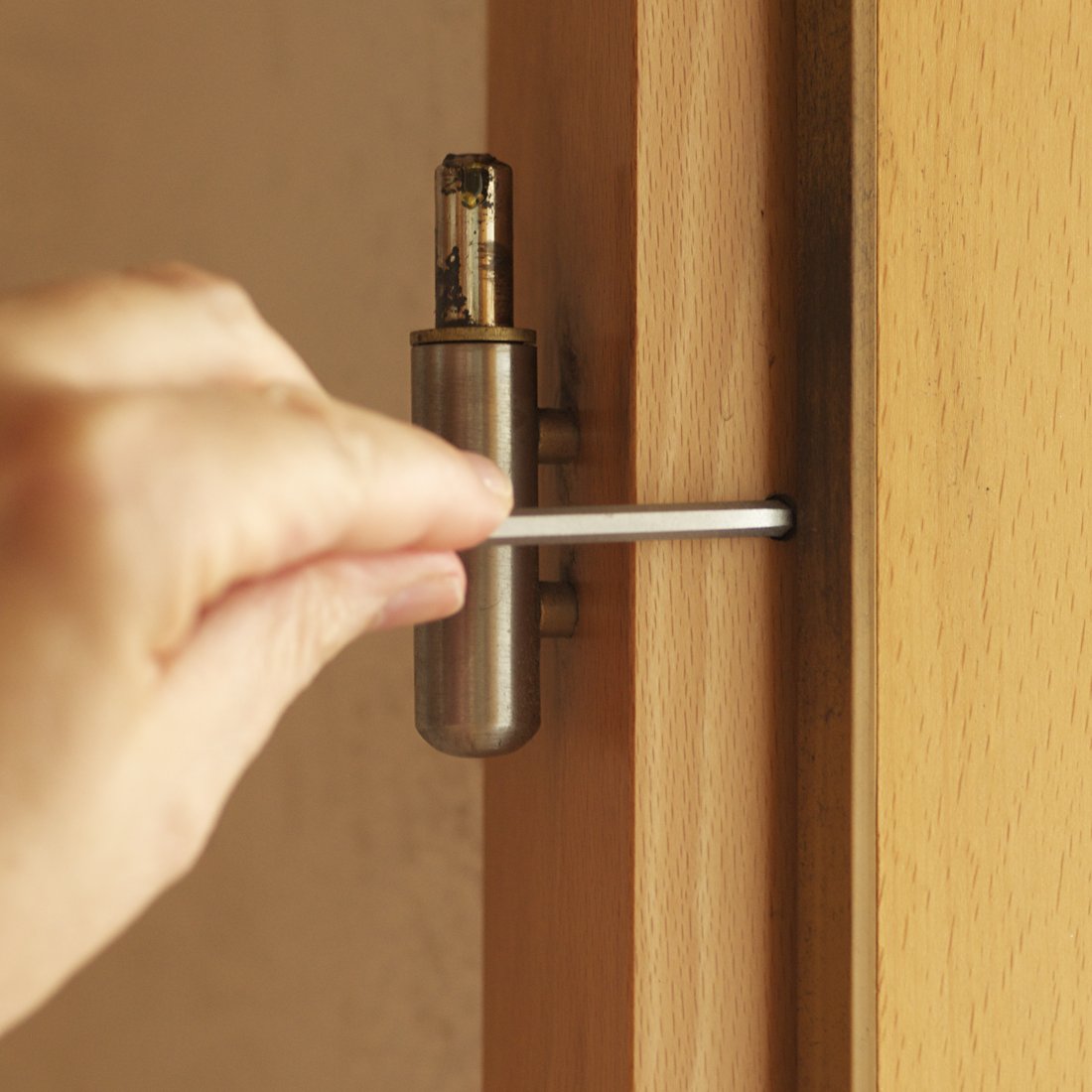 Если петли сильно расшатались, то необходимо заменить крепежные элементы новыми изделиями, превосходящими их по длине. Если при этом отверстия значительно повреждены, то их необходимо предварительно заполнить подходящим материалом. Отрегулировать межкомнатную дверь можно следующим образом: