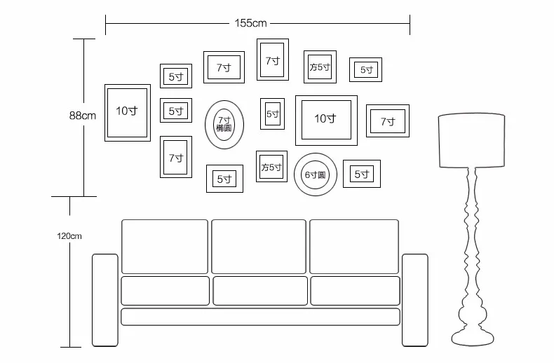По сути, вы должны рассматривать группу как единое произведение искусства, чтобы центр группы находился на высоте от 57 до 60 дюймов от земли.