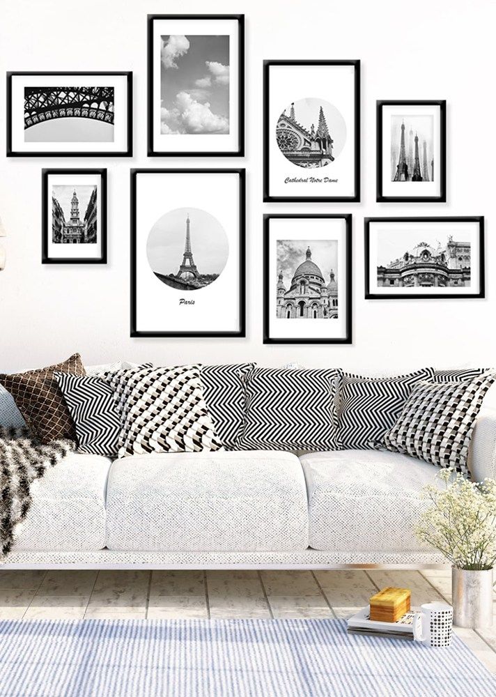 Если вы сомневаетесь, просто сделайте бумажные шаблоны для своих произведений искусства и прикрепите их к стене перед тем, как повесить, чтобы убедиться, что все правильно расставлено.