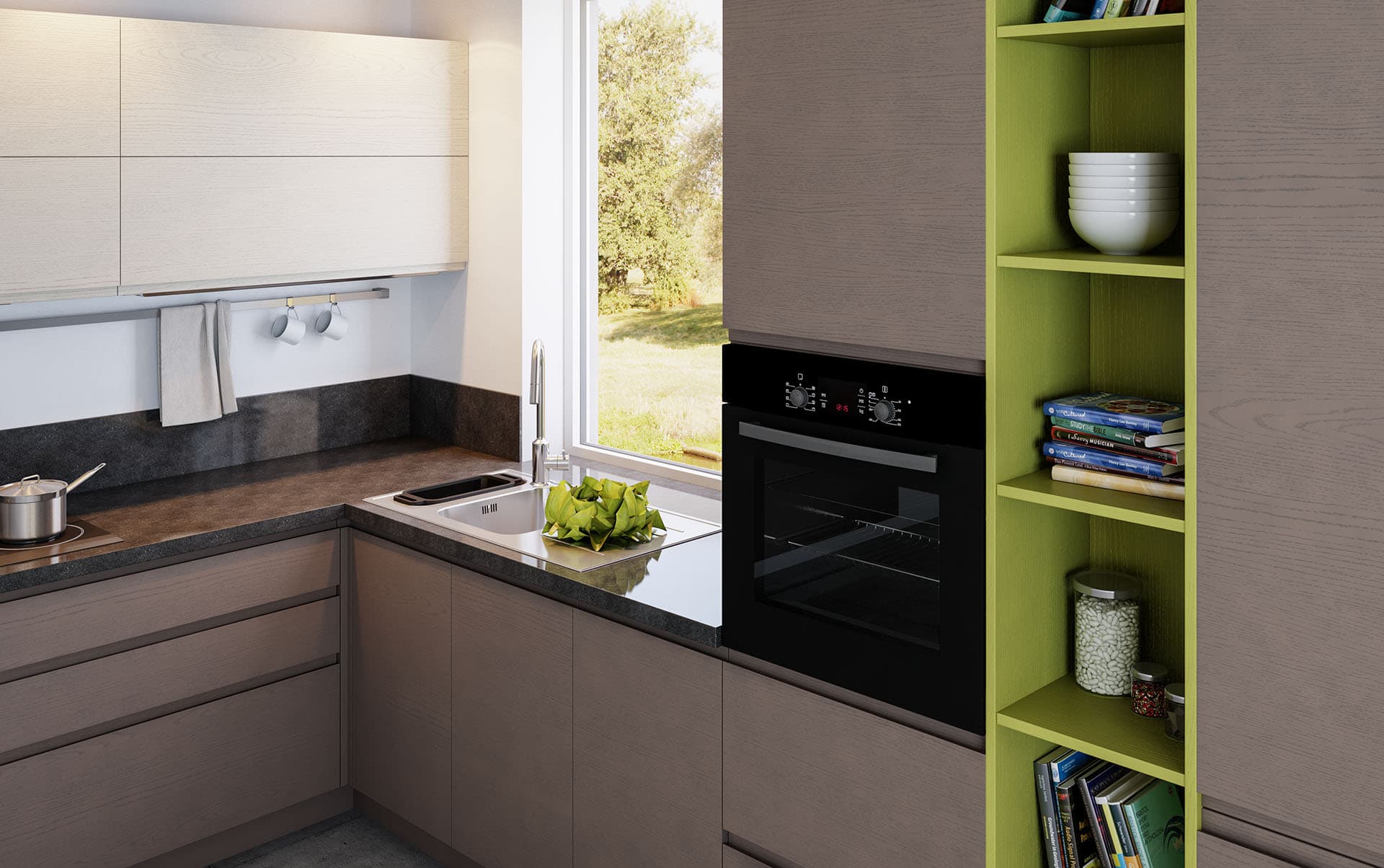 Они хорошо сочетаются с деревянными кухонными фасадами, но требуют аккуратного обращения, так как могут повредить фасад.