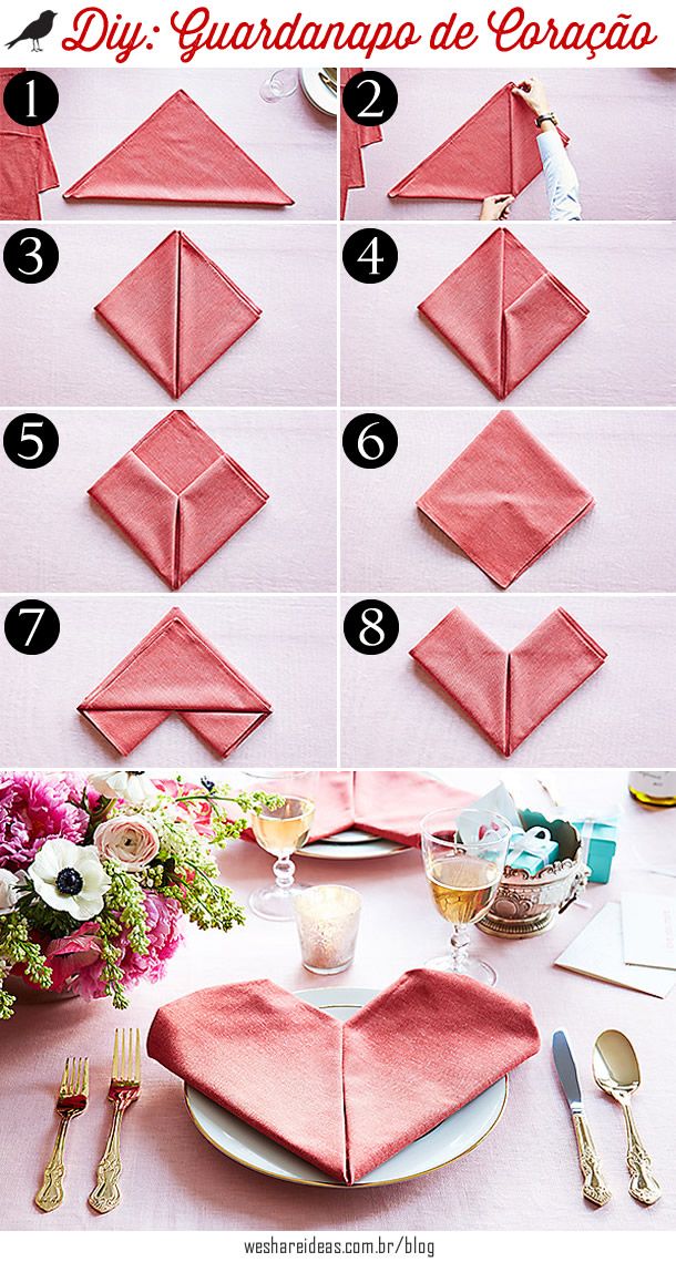 - Последним шагом будет отгибание верхних углов внутрь, чтобы сформировалось сердечко. Оригинальная и романтичная салфетка готова!