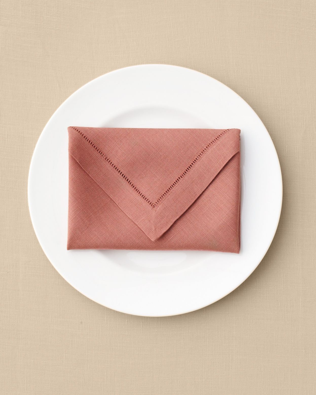 У меня уже много лет есть эти простые коричневые салфетки, и они очень хорошо подходят для этого типа складывания салфеток, потому что у них нет лицевой или изнаночной стороны и нет больших подгибов по краям (только очень маленькие обметочные салфетки). шва). Показанные здесь мои салфетки имеют размер 18″x19″ (и все эти годы я думал, что они идеально квадратные, пока не измерил их для этой записи в блоге!)
