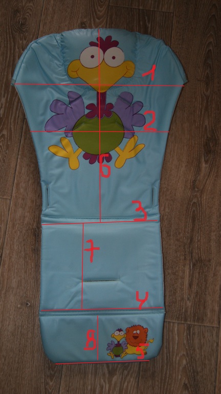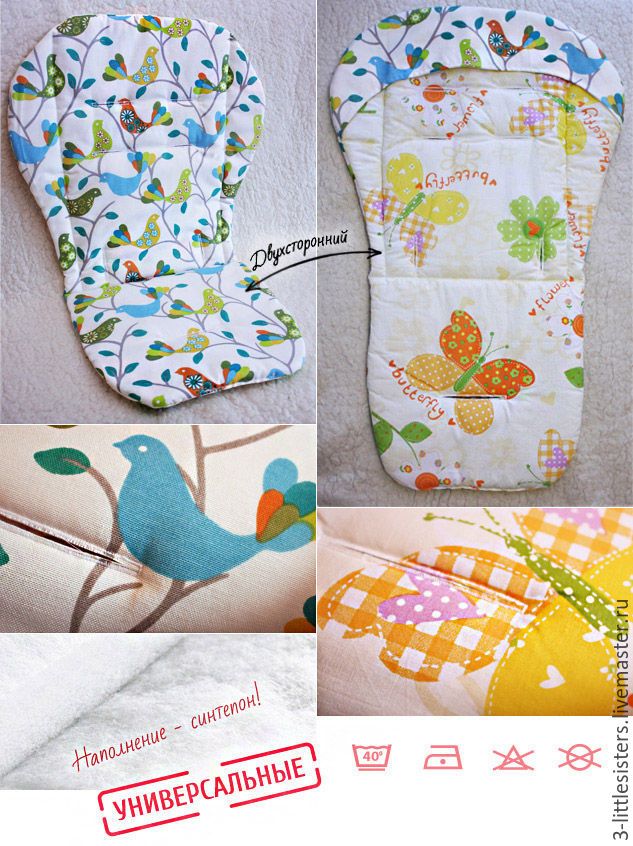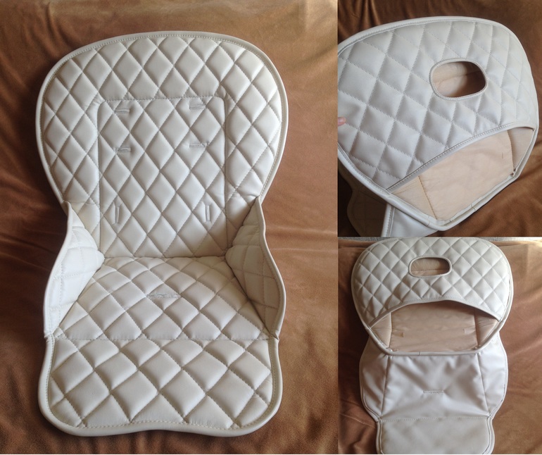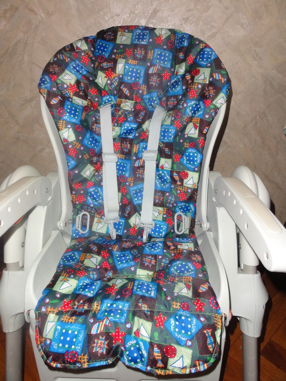 Достаточно часто стульчики для кормления продаются вместе с пластиковым чехлом, раздражающим кожу ребенка. В таких случаях лучше изготовить чехол самостоятельно.