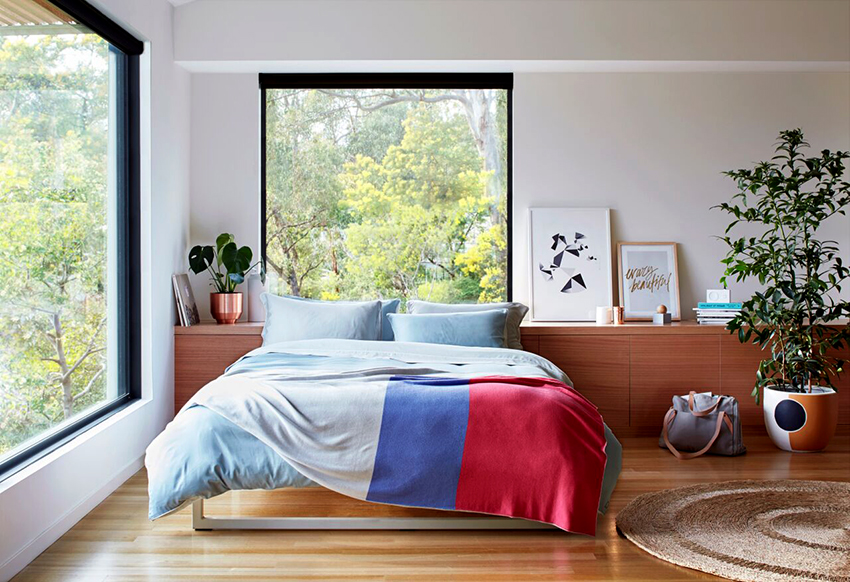 Кровать стоит ставить подальше от окна. От него обычно идут потоки холодного воздуха. Также необходимо предупредить любые сквозняки, проходящие через спальню.