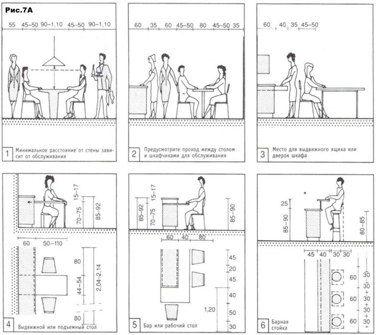 Высота барной стойки для кухни (стандарт) в квартире от пола, размеры