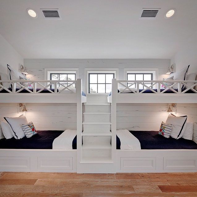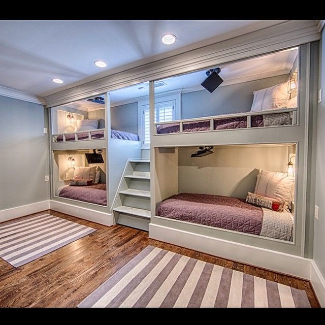 Эта идея двухъярусной кровати от Little Folks Furniture (открывается в новой вкладке) — одна из наших любимых идей для спальни маленьких детей, так как это комод, книжный шкаф, письменный стол, и кровать, все в одном. Буквально, чего еще можно желать?
