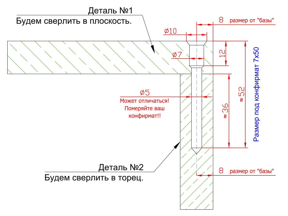 В зависимости от диаметра конфирмата размеры сверл для таких креплений тоже меняются.