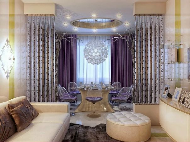 Кто-то в семье работает, значит необходимо выделить зону под рабочее место. Есть дети – мебель должна быть лишена острых углов, а декор – острых и легко бьющихся предметов. К тому же эта комната – основное место для приема гостей, а потому требуется столовая или, как минимум, место для чайного столика. - Зонирование. При правильном подходе подарит изолированные функциональные пространства. Хорошие идеи рассмотрим подробнее ниже.