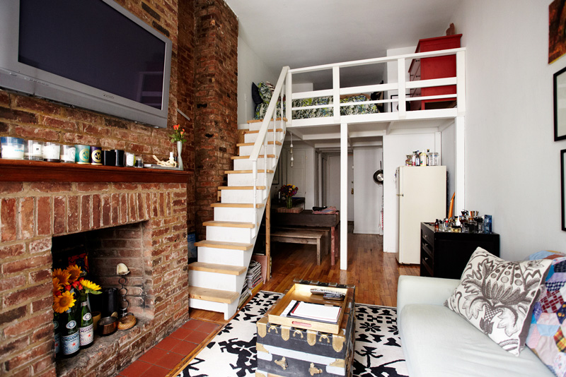 Если высота потолка подводит, сделайте антресоль там, где большую часть времени сидите. Например, над диваном или рабочим местом. Так не придется биться головой об потолок.