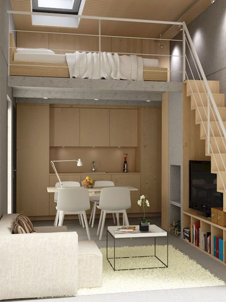 Это фантастический способ увеличить площадь пола, особенно в компактной квартире или в доме, где свободное пространство имеет большое значение. Идея состоит в том, чтобы переместить вашу спальню в антресоль, чтобы вы могли освободить пространство внизу и создать большую зону открытой планировки.