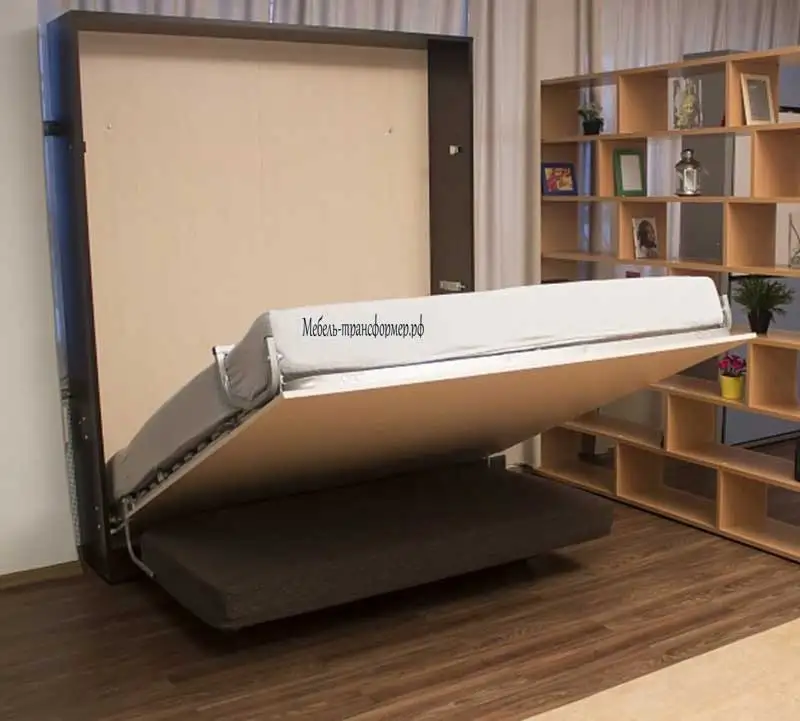– подъемная кровать, которая убирается в шкаф. Если одна комната является спальней, гостиной, то он – универсальное решение.