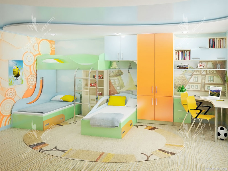 Вот несколько вариантов оформления детской комнаты для троих детей: