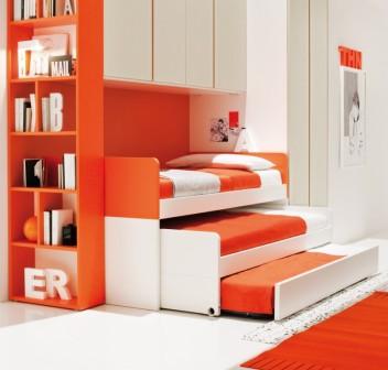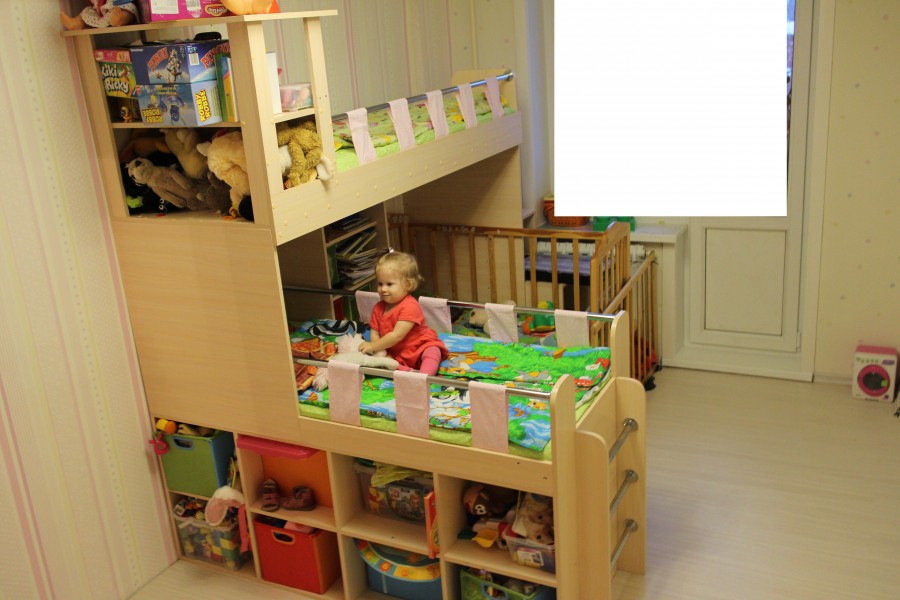 В данном случае также могут быть вариации. Например, в сложенном виде — это двухъярусная кровать, а на время сна выдвигается нижний, дополнительный ярус, и появляется спальное место для третьего ребенка.