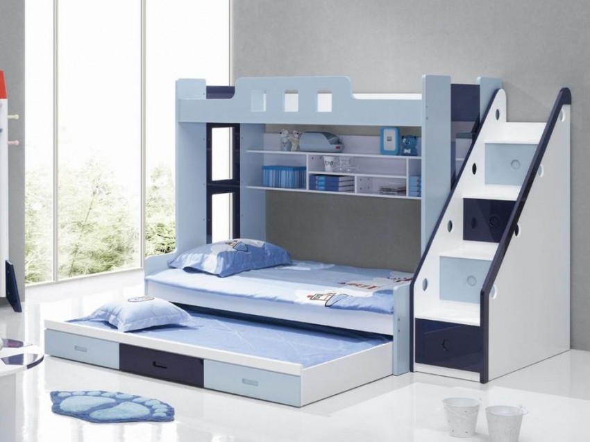 Если вам предстоит покупка кроватей для маленькой комнаты, в которой проживают трое детей, то многофункциональная кровать, гармонично сочетающая в себе три спальных места, подойдёт вам идеально. Вариантов подобных конструкций предостаточно.