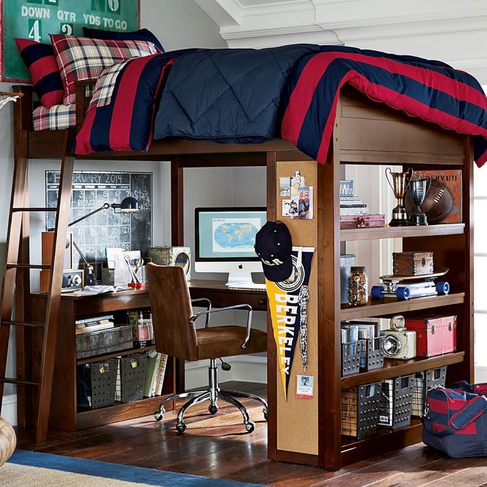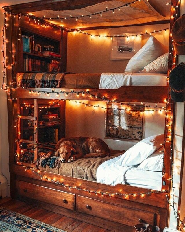 PinterestЕсли у вас недостаточно места для постройки спальни, когда у вас много членов семьи, попробуйте создать необычную двухъярусную кровать.