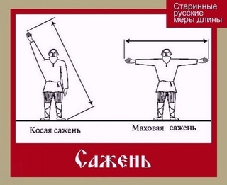 Косая сажень — расстояние от пальцев ноги до конца пальцев руки, вытянутой над головой по диагонали ≈ 248 см
