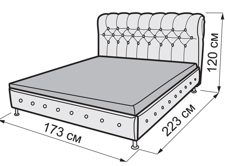 Размеры двуспальных кроватей в английской системе мерТрадиционный размер 2х спальной мебели мягкого типа выглядит так: 2х1,5, где 2 — это длина кровати, а 1,5 — ее ширина. Зарубежные модели имеют небольшие отличия, длина может варьироваться от 2 до 2,2 м, что касается ширины, то ее допустимые размеры — это 1,80 и 2,2 м.