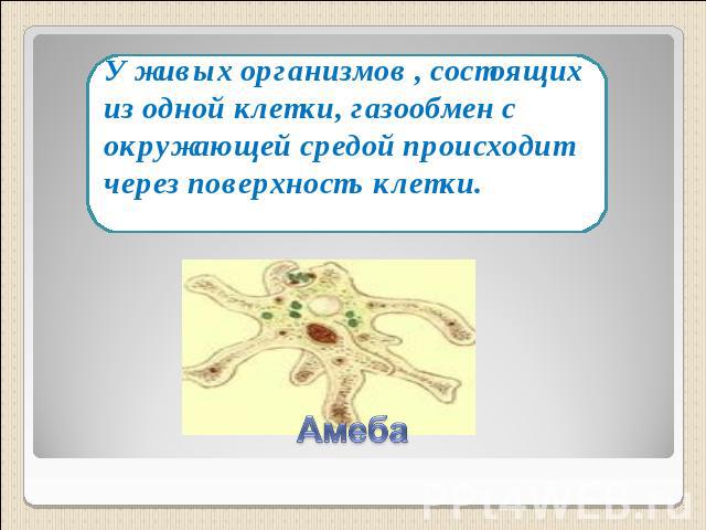 - Газообмен у амебы происходит через всю клеточную мембрану.