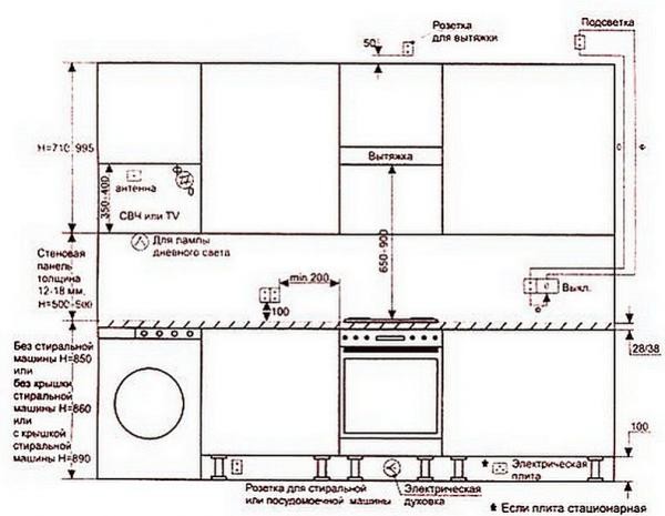 Также существенно влияет отдельно стоящая бытовая техника (стиральная машина, плита с духовым шкафом, посудомойка).