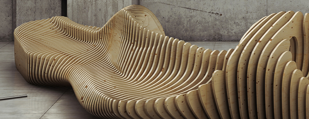 Параметрические скамейки – это мебель, которая отличается уникальной и неповторимой, футуристичной формой. Изготавливается из высококачественной фанеры. Параметрические скамейки состоят из отдельных частей фанеры разных размеров, которые в совокупности скрепляются металлическими стержнями в одну единую конструкцию.