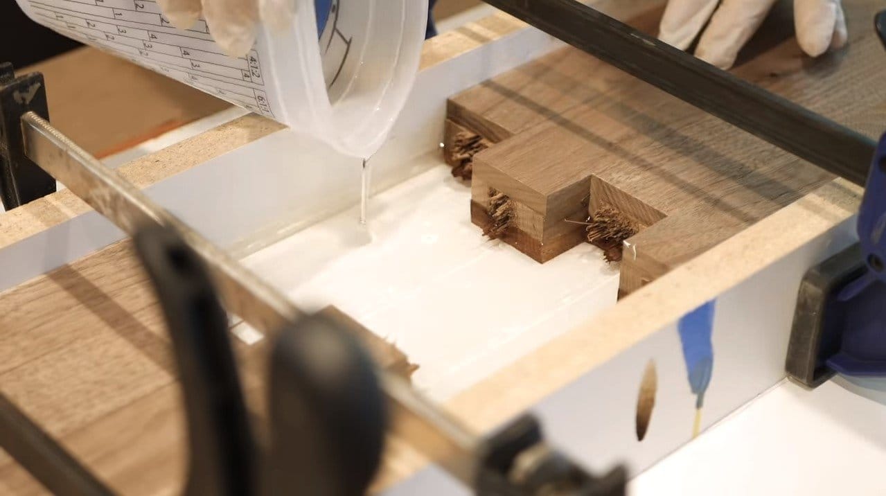Чтобы уберечь склеенное изделие от деформаций, оставьте его сохнуть на верстаке или другой плоской поверхности. Подкладные бруски, приподнимающие сборку над столом, обеспечивают циркуляцию воздуха вокруг изделия, что способствует равномерной просушке всех клеевых соединений.