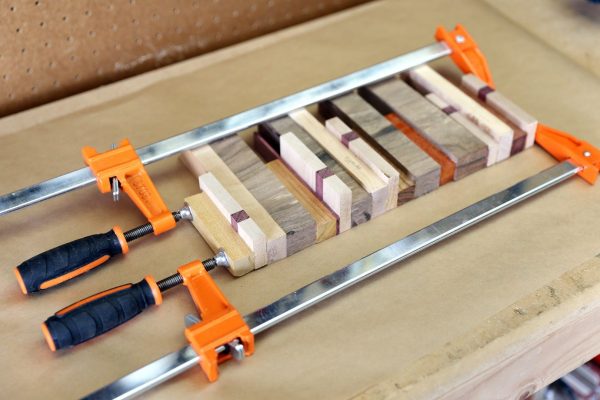 Второй важный момент это насколько сильно мы стянем брусочки струбцинами при склеивании.