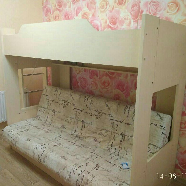 Двухъярусная кровать с диваном, разновидности, габариты, материалы