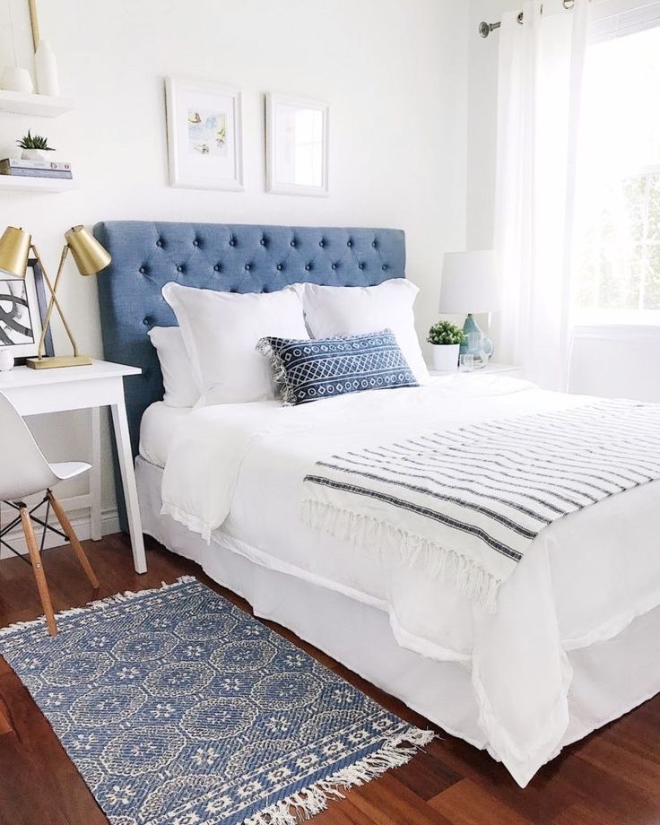 Затем у нас есть синий акцентный цвет. Этот цвет создает другой вид, если его добавить в спальню с доминирующими белыми и серыми цветами. Это не что иное, как крутой взгляд.