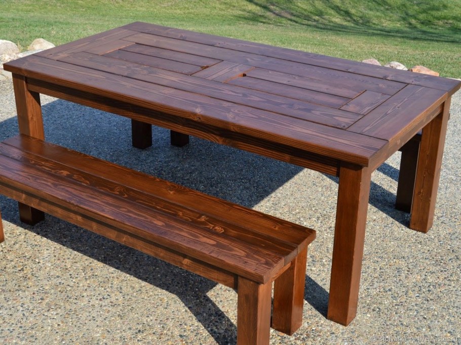 Вот и готов замечательный стол. Его не сдует порыв сильного ветра, он не завалится на бок, если пятилитровую кастрюлю с шашлыком поставить на самый край, а ножки не треснут под весом пляшущих на нем гостей.