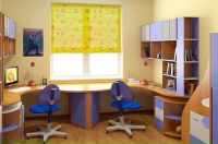Чтобы каждому ребёнку в семье было удобно, необходимо сделать два рабочих места. В целях экономии пространства возможно использование широкого подоконника вместо обычного деревянного письменного стола.