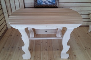 Для домов, бань и открытых беседок мы создаем столы и стулья из массива дерева — это основная зона, где должно быть комфортно всем гостям и хозяевам дома. Стеллажи для временного хранения вещей сделают быт комфортным, а при наступлении холодов их легко переместить в дом — оригинальные формы и украшения делают мебель для беседки универсальной.