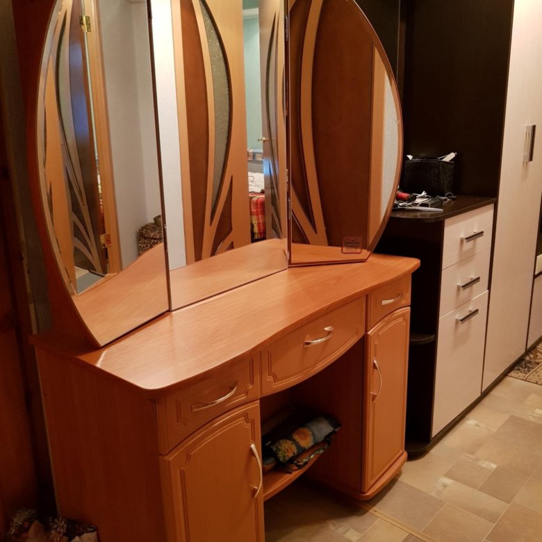 Трельяж — в отличие от обычных столиков, обладает трехстворчатым зеркалом.