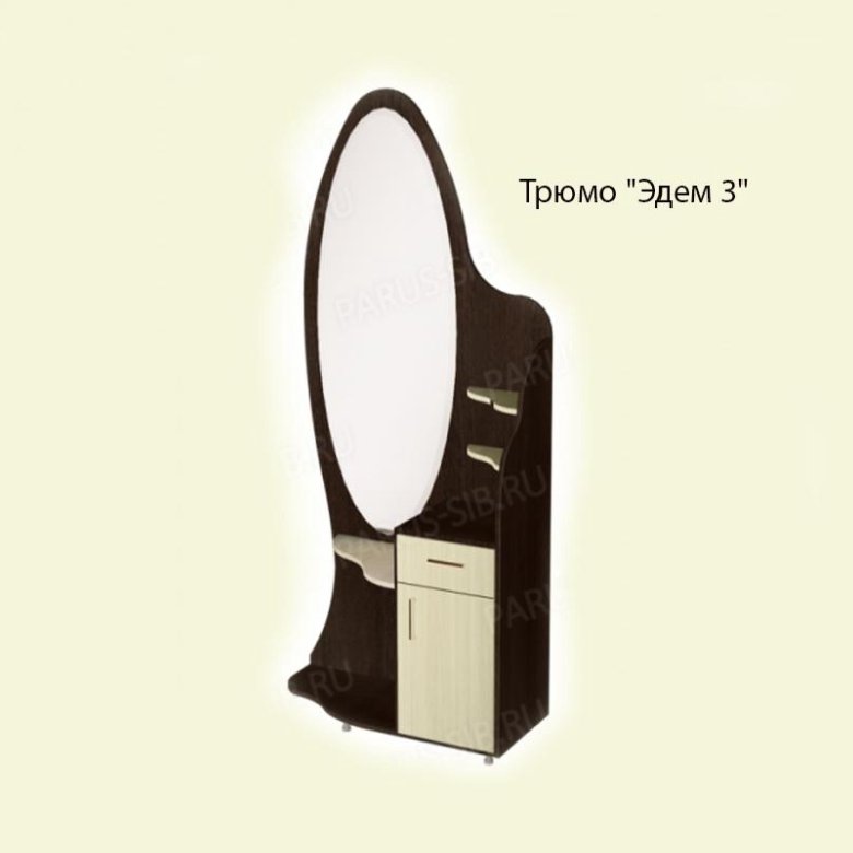 Трюмо — обладает высоким зеркалом, почти во весь рост. Сам стол может быть как маленького, так и большого размера. Помимо обычного крепления зеркала, можно сделать его откидным. Следовательно, оно не будет собирать много пыли и станет более компактным.